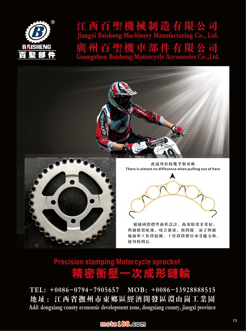 2018.5月《摩托車/電動(dòng)車與配件》雜志,歡迎大家閱讀日期:2018-04-25 點(diǎn)擊:1896 查看原圖 全部展開![]() ![]() ![]() 內(nèi)13 廣州百圣機(jī)車部件有限公司