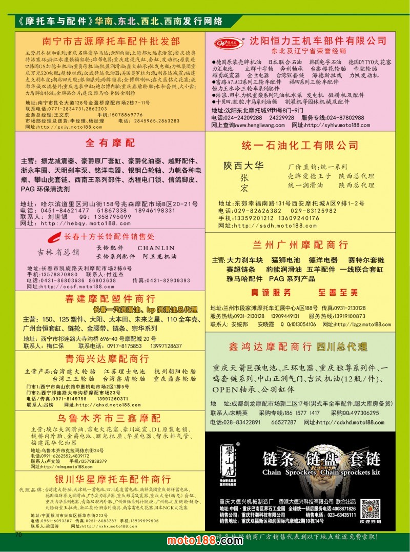 從現在到10月上旬,我們還將對16年編撰的《摩配華南市場指南》進行升級,中英文雙語出版,新版本將在下半年第76屆廣州全國摩托車及配件展示交易會首發;并在廣州重慶摩配市場全面派送;在廣州福星、松南市場門口、及白云210/002/607三個檔口常年設立發行窗口;發行至廣州、重慶、江浙的主要廠家,目前收集整理、核對校正信息,編排翻譯的工作正在進行之中,需要在最新《華南市場指南》升級版做宣傳的企業,請和我們以及各地的工作站人員聯絡。