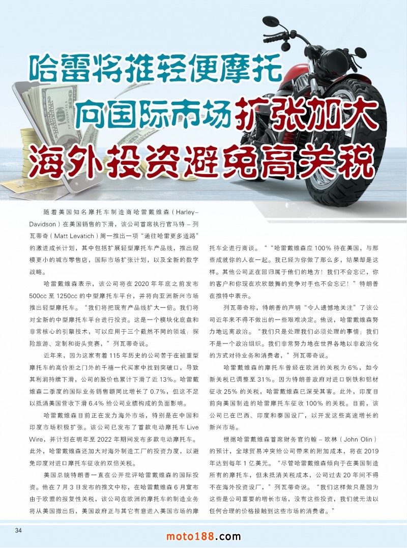 2018.10月《摩托車(chē)/電動(dòng)車(chē)與配件》雜志,歡迎大家閱讀日期:2018-09-28 點(diǎn)擊:1541 查看原圖 全部展開(kāi)![]() ![]() ![]() 內(nèi)34 哈雷將推輕便摩托向國(guó)際市場(chǎng)擴(kuò)張 加大海外投資避免高關(guān)稅