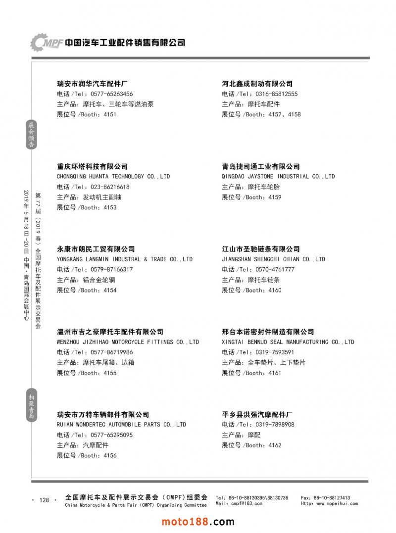 內(nèi)127 第76屆(2018秋)全國摩托車及配件展示交易會-廣州站參展企業(yè)信息