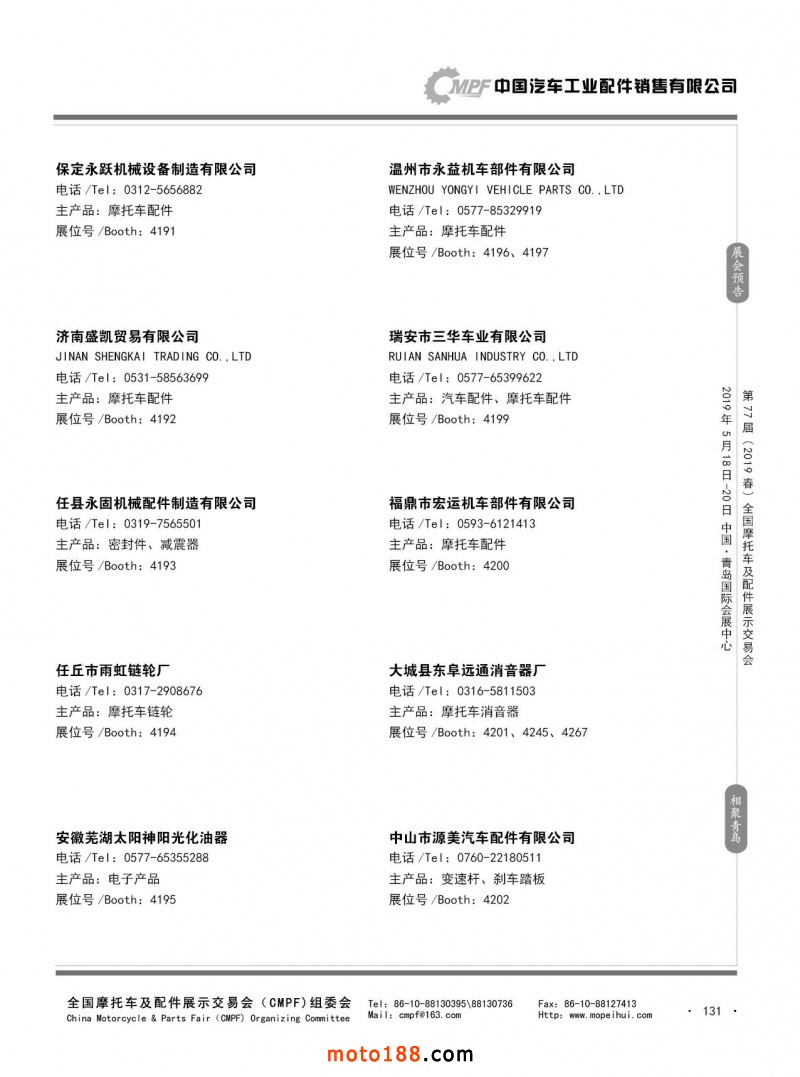 內(nèi)131 第76屆(2018秋)全國摩托車及配件展示交易會(huì)-廣州站參展企業(yè)信息