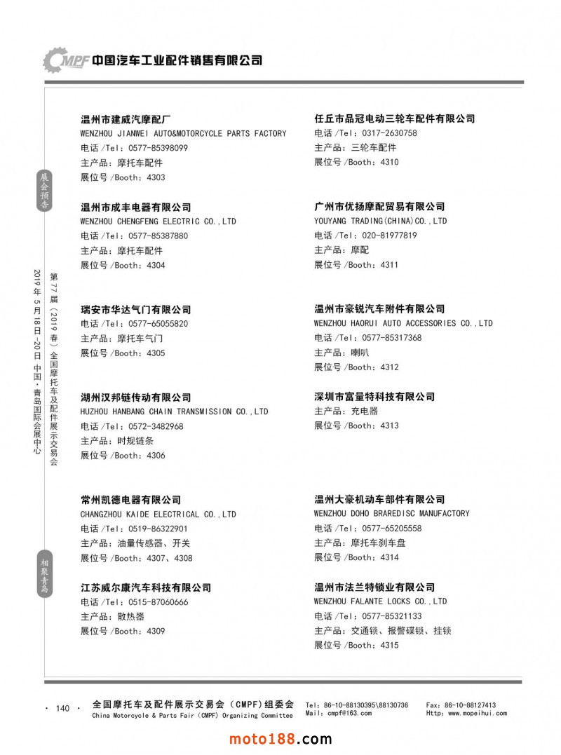 內140 第76屆(2018秋)全國摩托車及配件展示交易會-廣州站參展企業信息