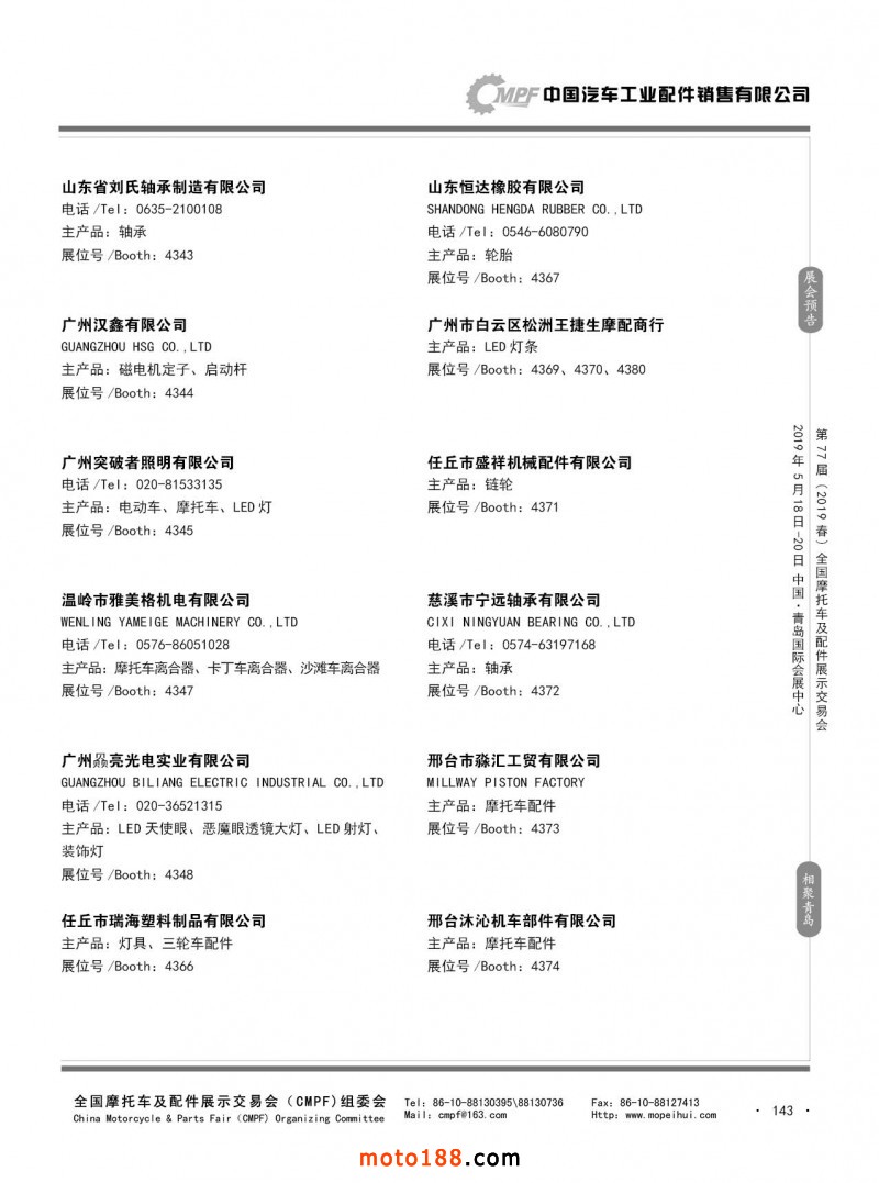內(nèi)143 第76屆(2018秋)全國摩托車及配件展示交易會-廣州站參展企業(yè)信息
