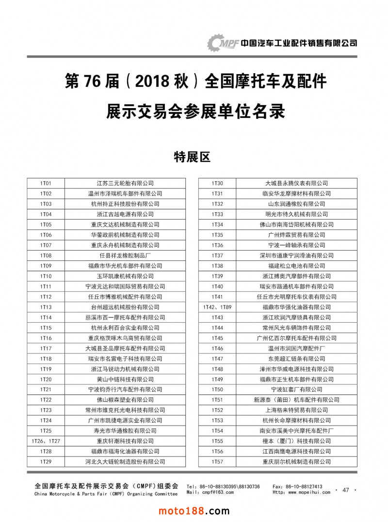 內47 第76屆(2018秋)全國摩托車及配件展示交易會-廣州站參展單位名錄