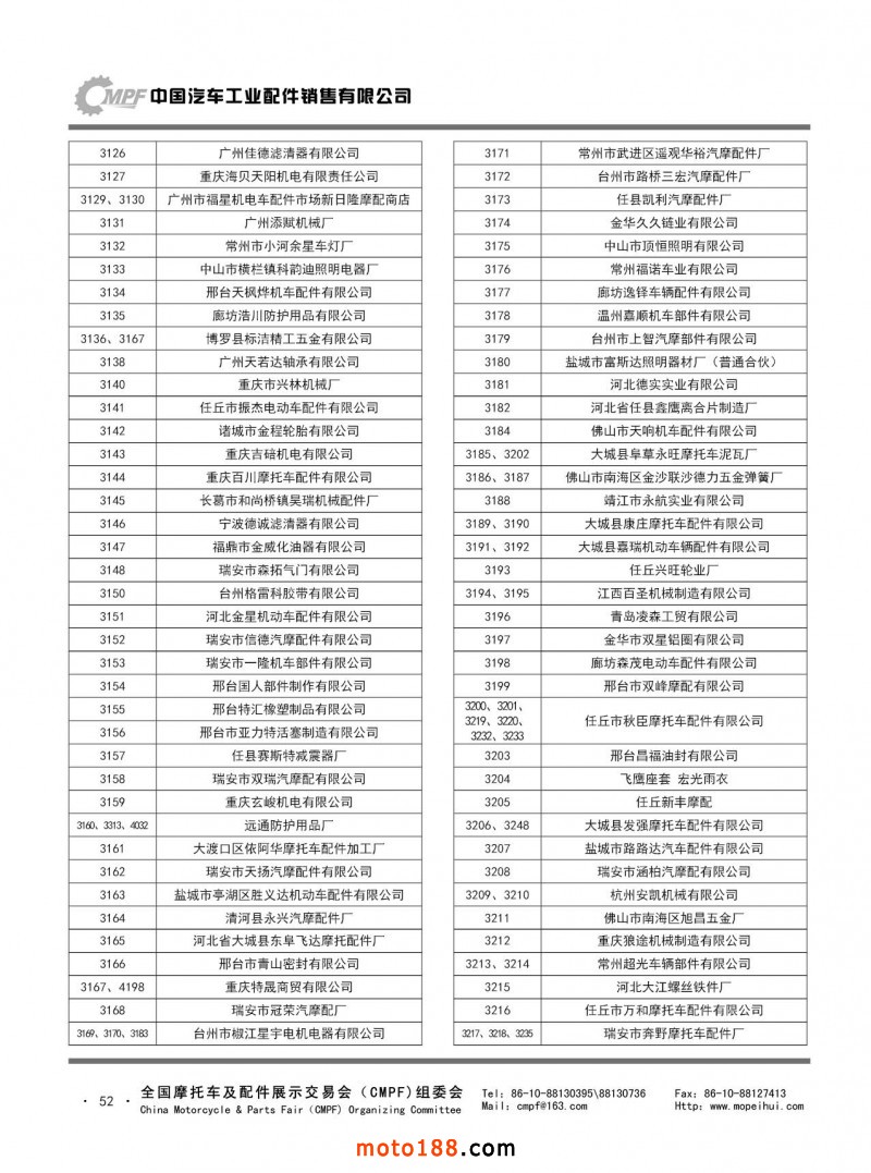 內52 第76屆(2018秋)全國摩托車及配件展示交易會-廣州站參展單位名錄第76屆(2018秋)全國摩托車及配件展示交易會-廣州站參展單位名錄