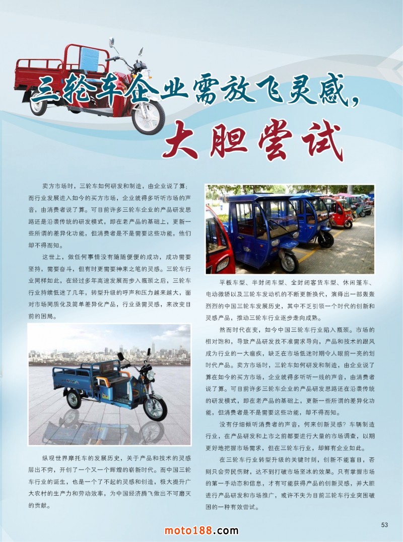 內53 三輪車企業需放飛靈感,大膽嘗試。