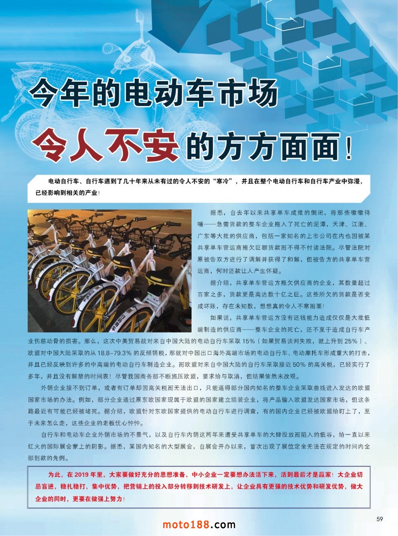 在這個春天里我們感受到和風(fēng)拂面,我們更堅定了信心,我們傳統(tǒng)媒體務(wù)實的發(fā)展和經(jīng)營,基礎(chǔ)工作在不斷的加厚夯實,今年我們雜志進(jìn)行了大調(diào)整,一年只在銷售季里出刊,全年出刊四期精品,本期雜志就有許多重要信息發(fā)布:政策面上的行業(yè)和地方上的重要政策(如前所述),18年的市場數(shù)據(jù)匯總分析,通機(jī)產(chǎn)品技術(shù)介紹 ,行業(yè)有關(guān)的重要國際資訊,國際巨頭研發(fā)生產(chǎn)的情況動態(tài),電摩行業(yè)電動三四輪及動力電池最新的國家和地方政策,從海量的信息里精挑細(xì)選,每一遍文章都能讓讀者開卷有限,同時還值得收藏。