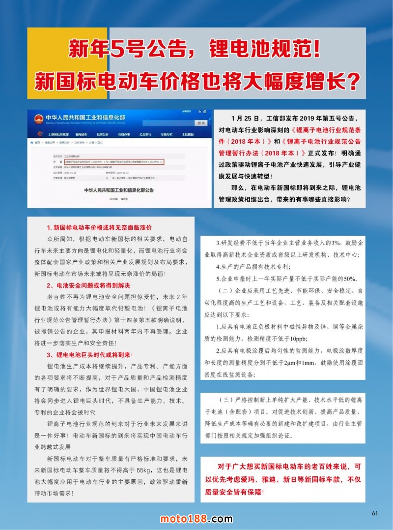 內61 新年5號公告,鋰電池規范!新國標電動車價格也將大幅度增長?