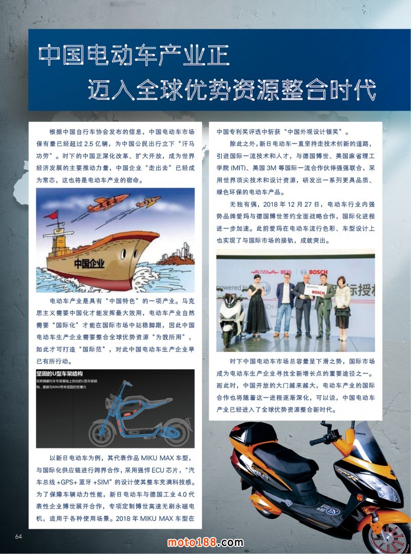 在這個春天里我們感受到和風(fēng)拂面,我們更堅定了信心,我們傳統(tǒng)媒體務(wù)實的發(fā)展和經(jīng)營,基礎(chǔ)工作在不斷的加厚夯實,今年我們雜志進行了大調(diào)整,一年只在銷售季里出刊,全年出刊四期精品,本期雜志就有許多重要信息發(fā)布:政策面上的行業(yè)和地方上的重要政策(如前所述),18年的市場數(shù)據(jù)匯總分析,通機產(chǎn)品技術(shù)介紹 ,行業(yè)有關(guān)的重要國際資訊,國際巨頭研發(fā)生產(chǎn)的情況動態(tài),電摩行業(yè)電動三四輪及動力電池最新的國家和地方政策,從海量的信息里精挑細(xì)選,每一遍文章都能讓讀者開卷有限,同時還值得收藏。