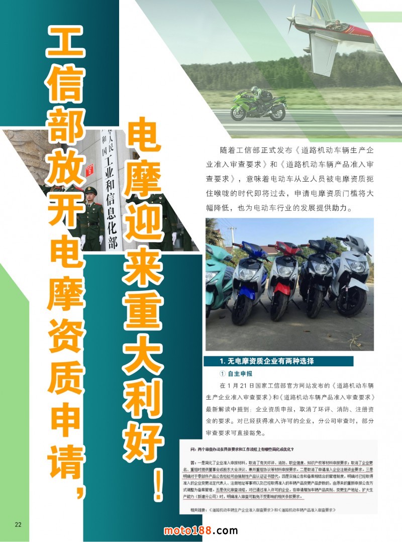 2019.5月《摩托車/電動(dòng)車與配件》雜志,歡迎大家閱讀日期:2019-05-08 點(diǎn)擊:1862 查看原圖 全部展開(kāi)![]() ![]() ![]() 內(nèi)22 工信部放開(kāi)電摩資質(zhì)申請(qǐng),電摩迎來(lái)重大利好!