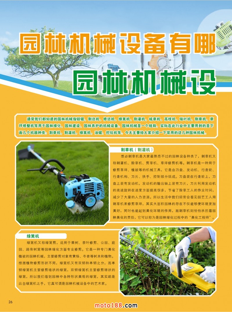 2019.5月《摩托車/電動(dòng)車與配件》雜志,歡迎大家閱讀日期:2019-05-08 點(diǎn)擊:1862 查看原圖 全部展開![]() ![]() ![]() 內(nèi)26 園林機(jī)械設(shè)備有哪些?園林機(jī)械設(shè)備詳解