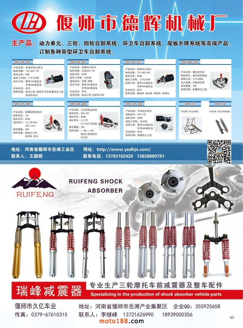 2019.5月《摩托車/電動車與配件》雜志,歡迎大家閱讀日期:2019-05-08 點擊:1861 查看原圖 全部展開![]() ![]() ![]() 內(nèi)63 偃師市德輝機械廠