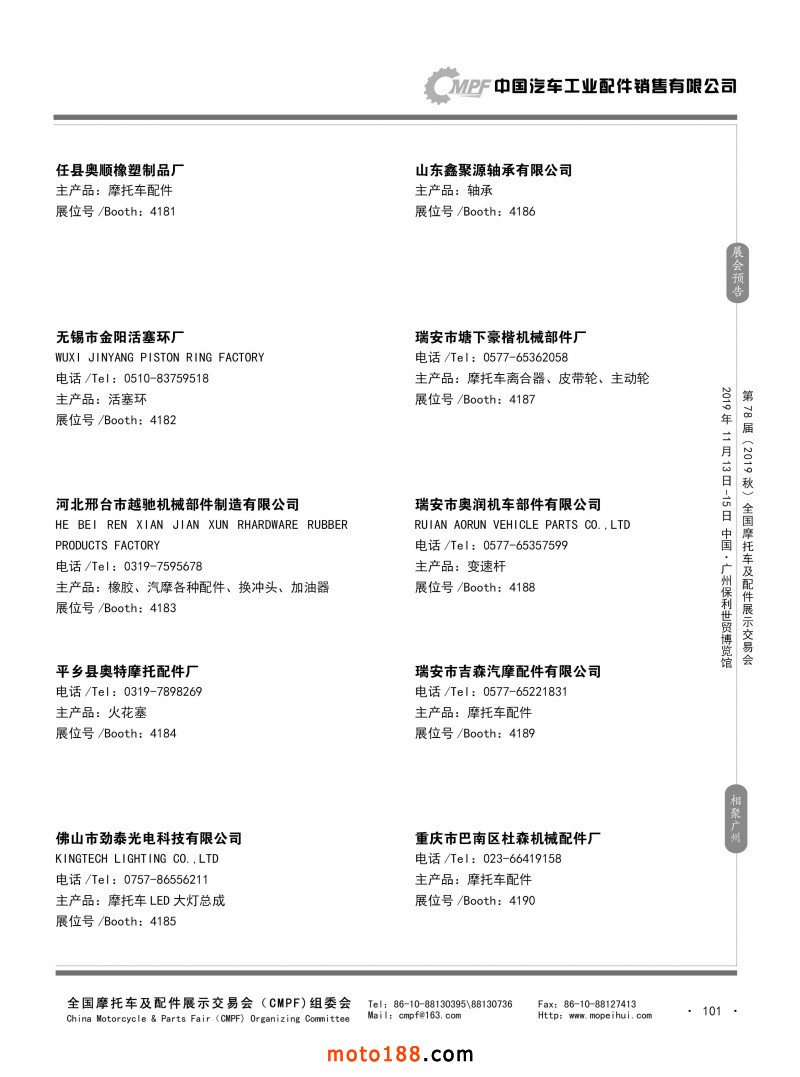 內(nèi)101 第77屆(2019春)全國(guó)摩托車及配件展示交易會(huì)-青島站參展企業(yè)信息
