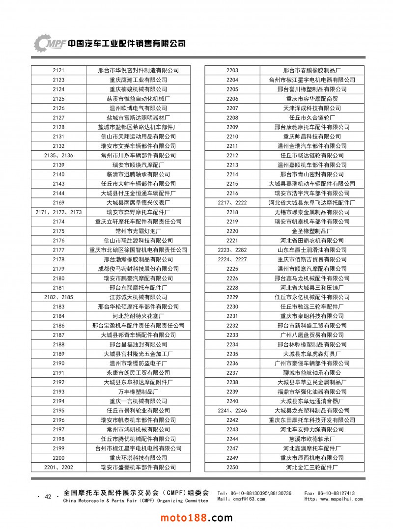 內42 第77屆(2019春)全國摩托車及配件展示交易會-青島站參展單位名錄