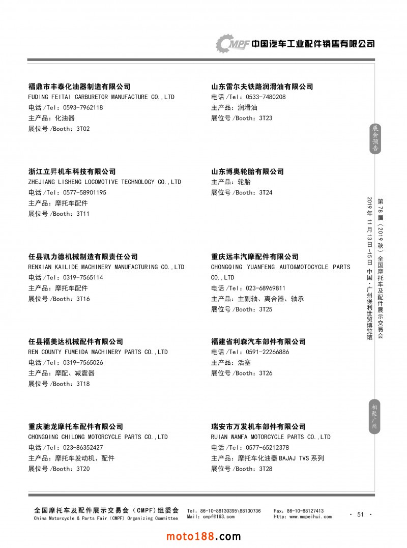 內51 第77屆(2019春)全國摩托車及配件展示交易會-青島站參展企業信息