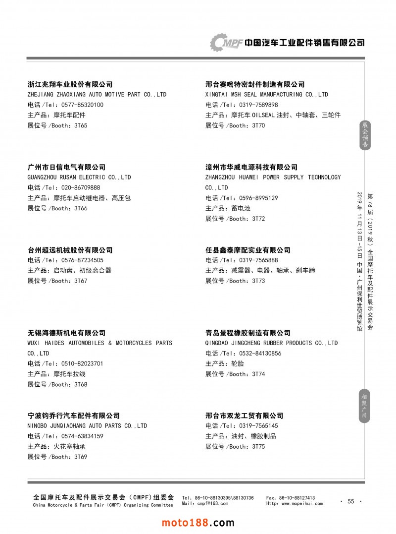 內55 第77屆(2019春)全國摩托車及配件展示交易會-青島站參展企業信息
