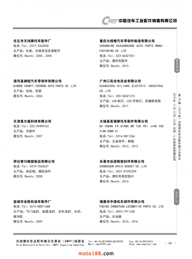 內(nèi)63 第77屆(2019春)全國摩托車及配件展示交易會(huì)-青島站參展企業(yè)信息