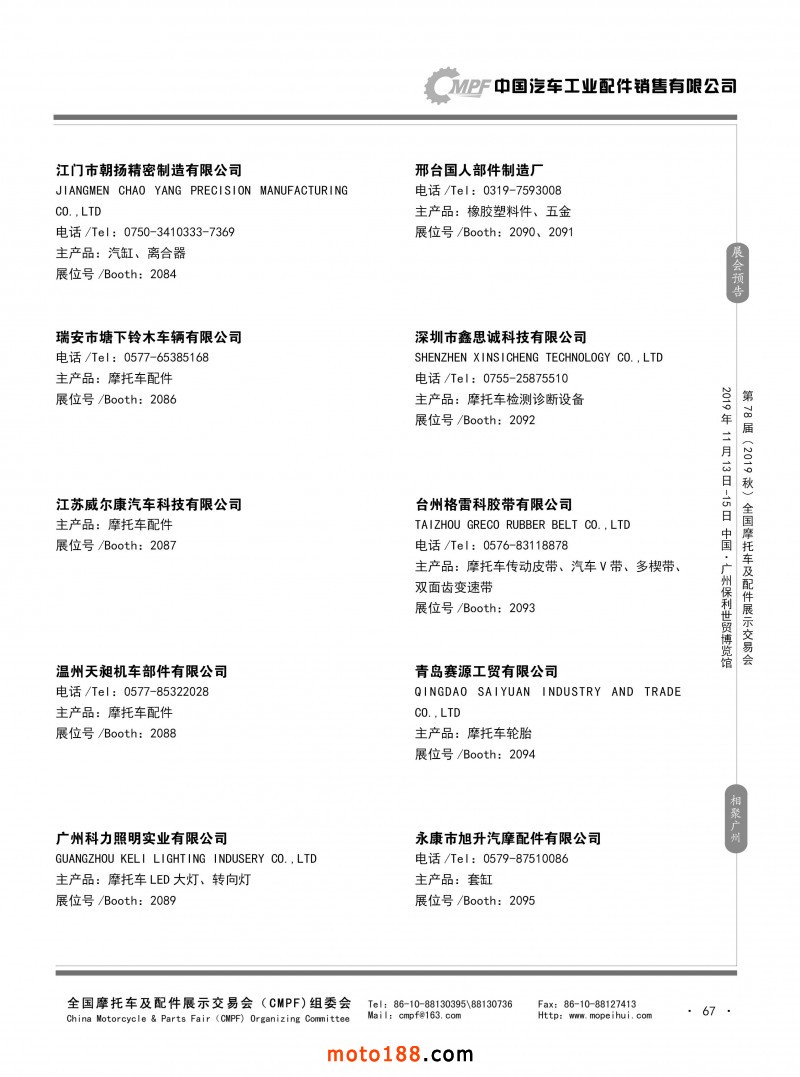 內67 第77屆(2019春)全國摩托車及配件展示交易會-青島站參展企業信息