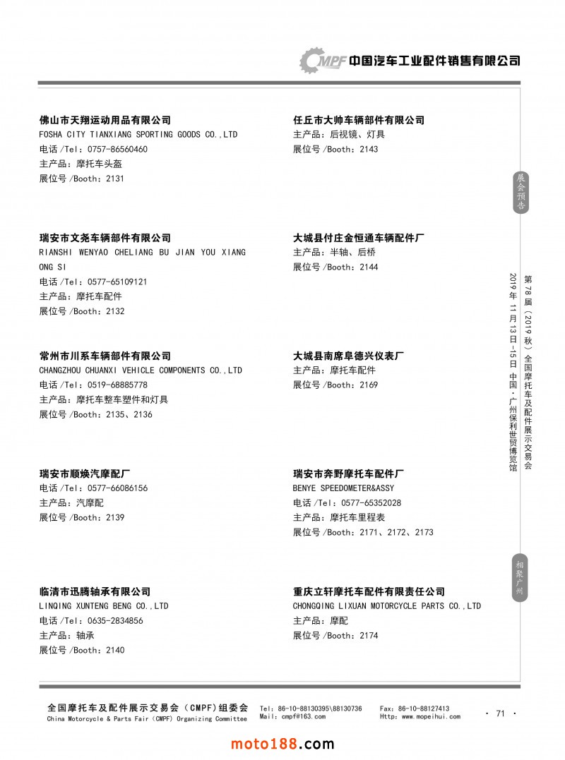 內71 第77屆(2019春)全國摩托車及配件展示交易會-青島站參展企業信息
