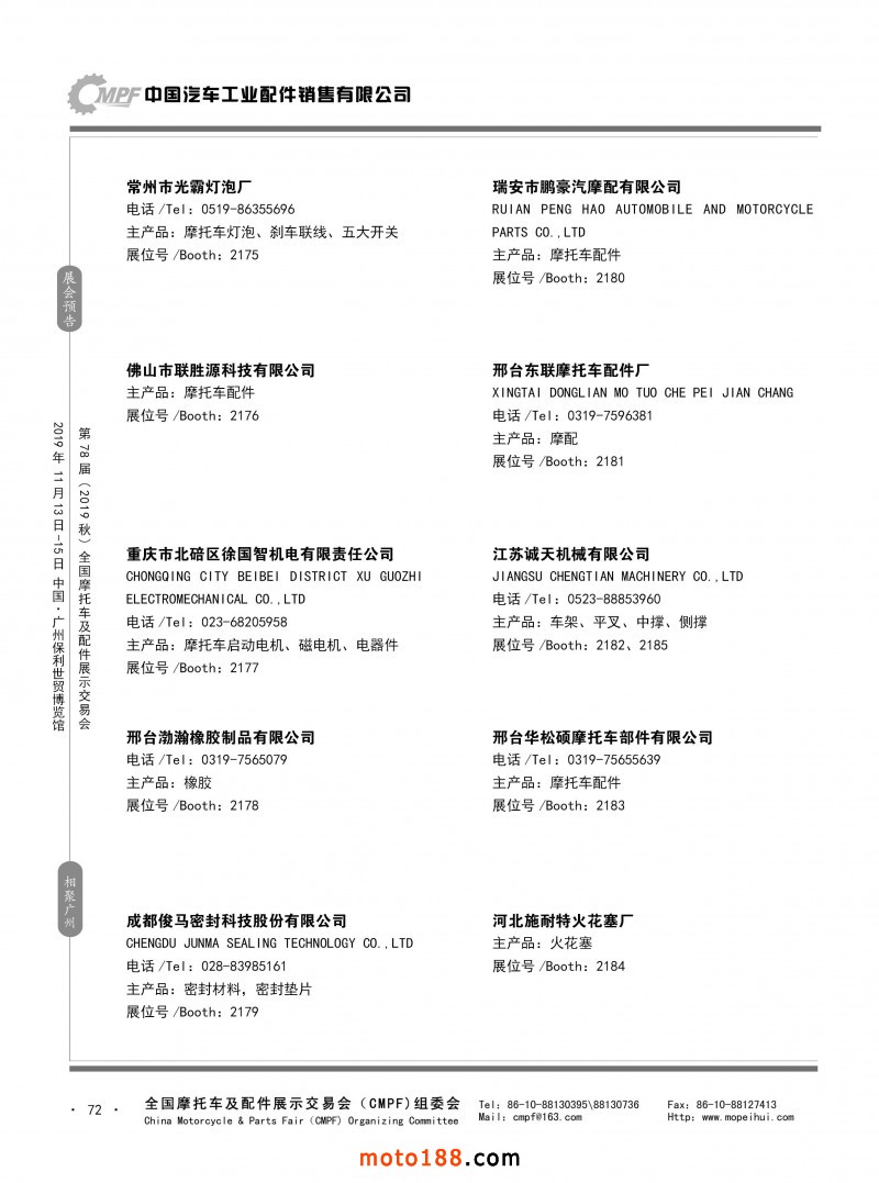 內72 第77屆(2019春)全國摩托車及配件展示交易會-青島站參展企業信息