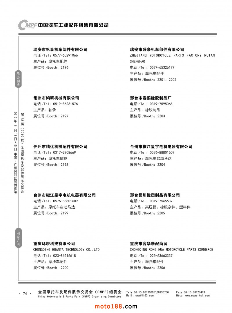 內74 第77屆(2019春)全國摩托車及配件展示交易會-青島站參展企業信息