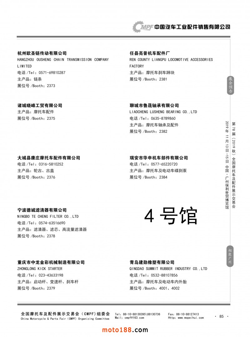 內85 第77屆(2019春)全國摩托車及配件展示交易會-青島站參展企業(yè)信息