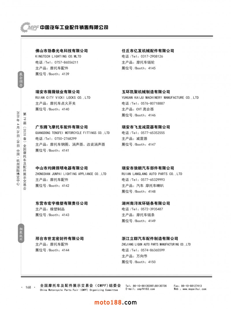 內79-172 第78屆(2019秋)全國摩托車及配件展示交易會-廣州站參展企業信息
