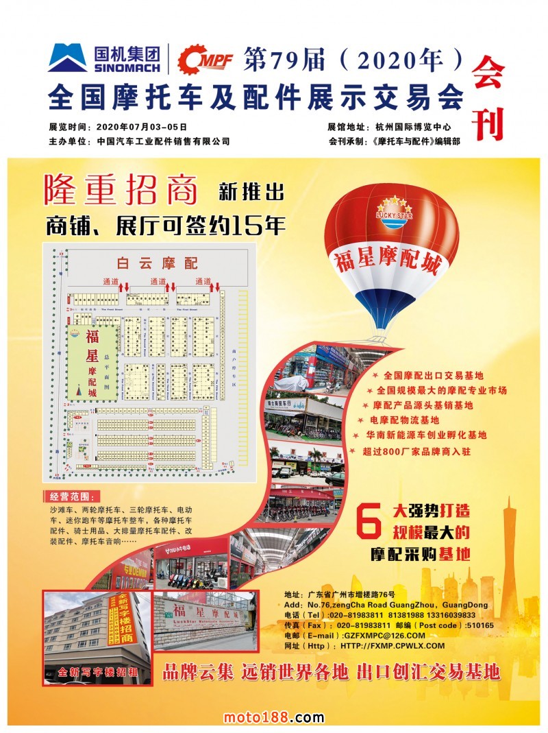 尊敬的各位行業同仁,原定7月于杭州國際博覽中心召開的“第79屆(2020春)全國摩托車及配件展示交易會”取消舉辦,原杭州會刊版面順延至下屆展會。感謝您的理解與支持!