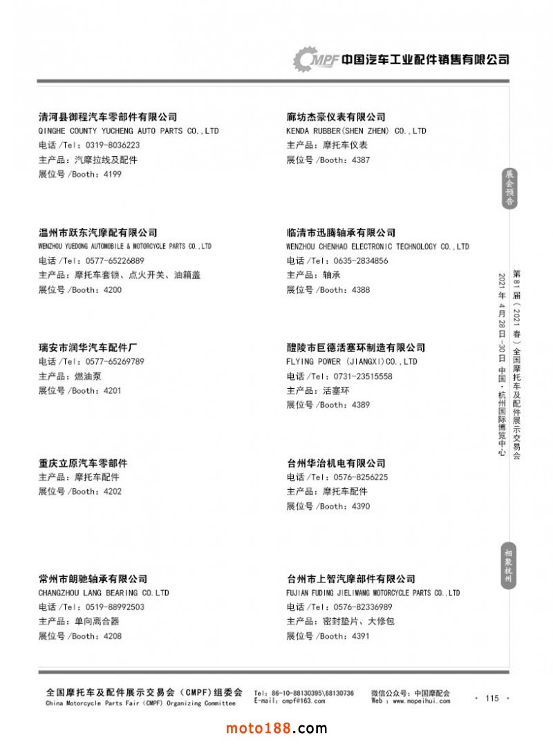內(nèi)115 第80屆(2020秋)全國(guó)摩托車及配件展示交易會(huì)-廣州站參展企業(yè)信息
