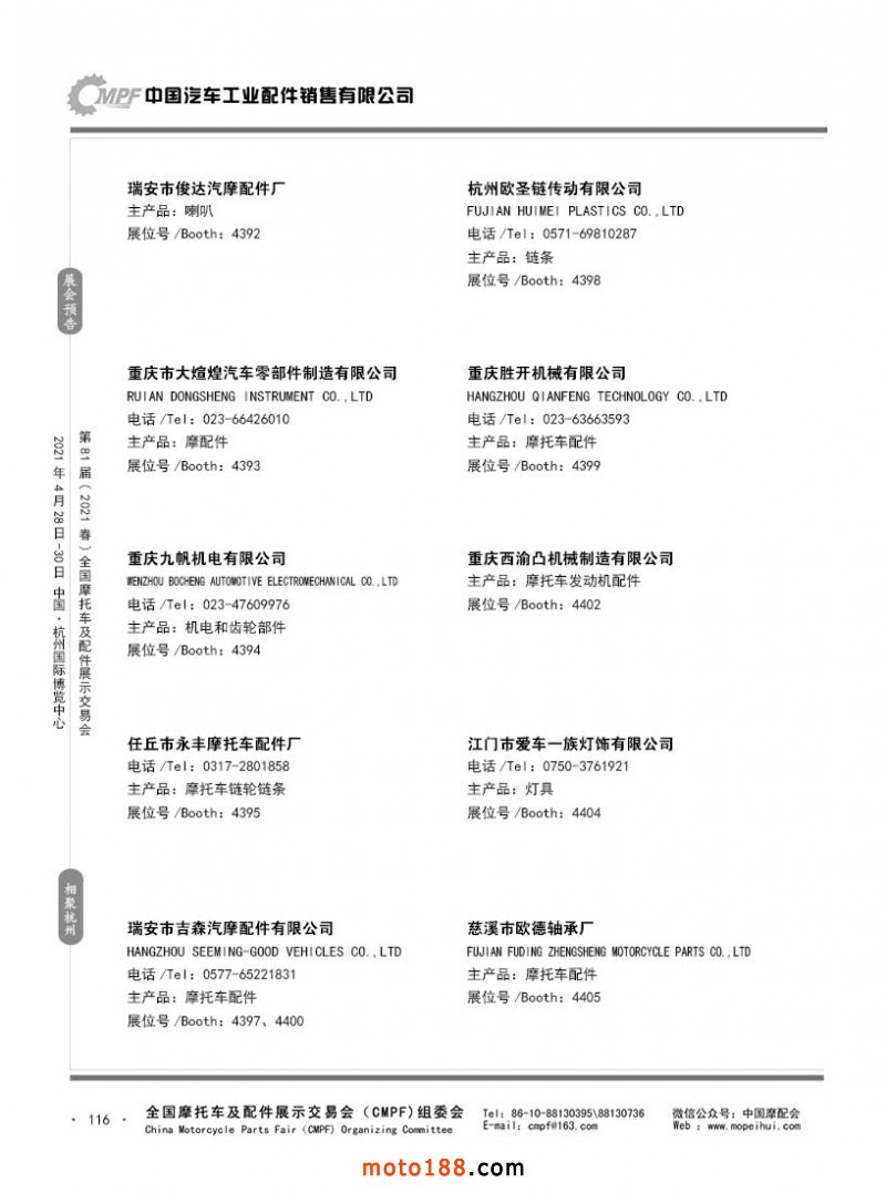 內(nèi)116 第80屆(2020秋)全國(guó)摩托車及配件展示交易會(huì)-廣州站參展企業(yè)信息