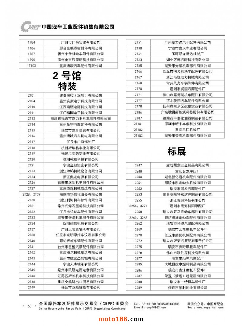 內60 第80屆(2020秋)全國摩托車及配件展示交易會-廣州站參展單位名錄