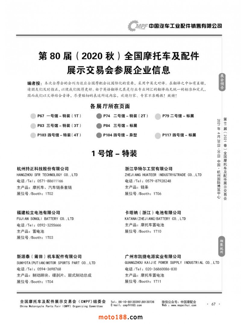 內(nèi)67 第80屆(2020秋)全國(guó)摩托車(chē)及配件展示交易會(huì)-廣州站參展企業(yè)信息
