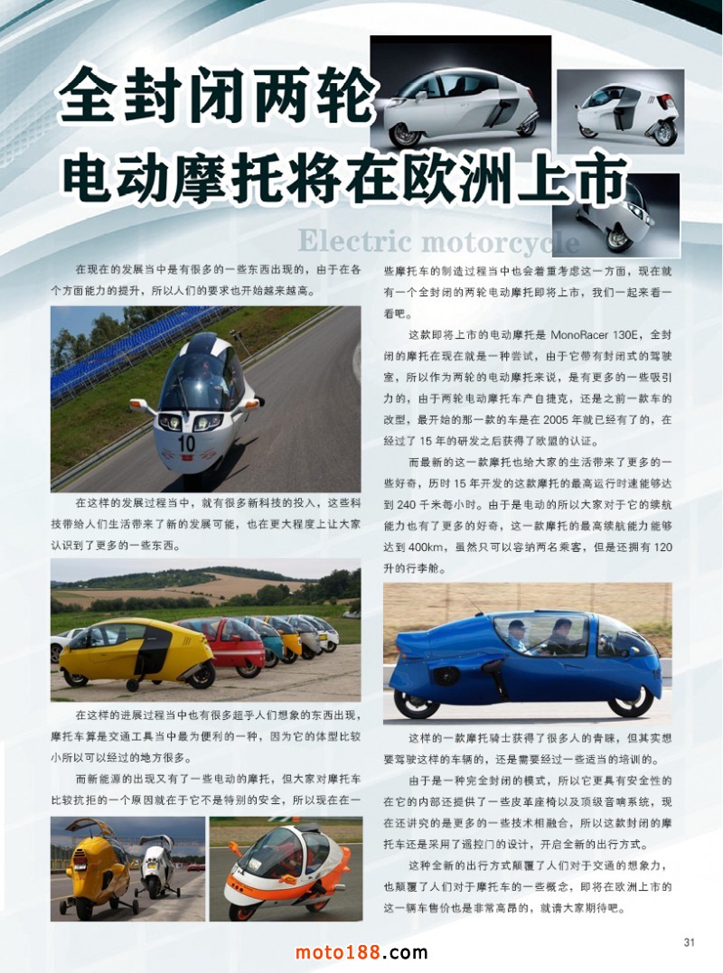內(nèi)31 全封閉兩輪電動(dòng)摩托將在歐洲上市