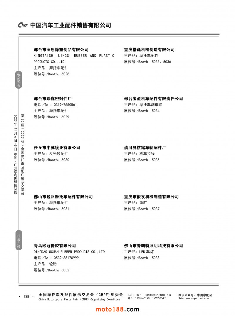 內80-176 第85屆(2023春)全國摩托車及配件展示交易會-重慶站參展企業信息