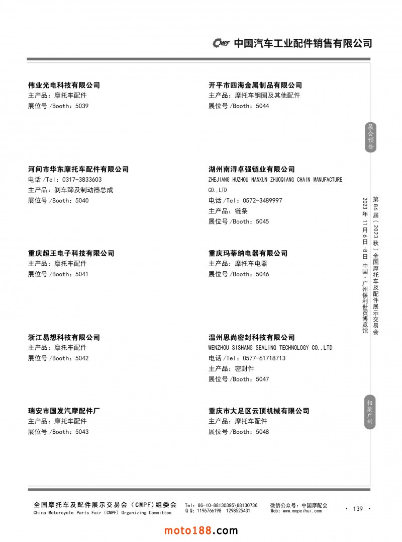內80-176 第85屆(2023春)全國摩托車及配件展示交易會-重慶站參展企業信息