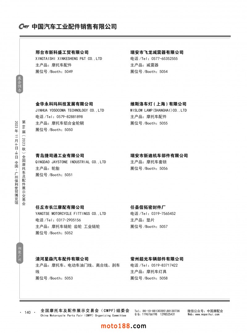 內80-176 第85屆(2023春)全國摩托車及配件展示交易會-重慶站參展企業信息