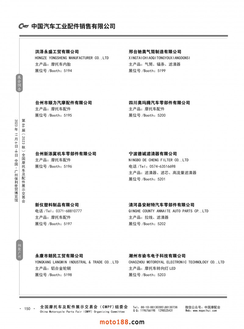內80-176 第85屆(2023春)全國摩托車及配件展示交易會-重慶站參展企業信息