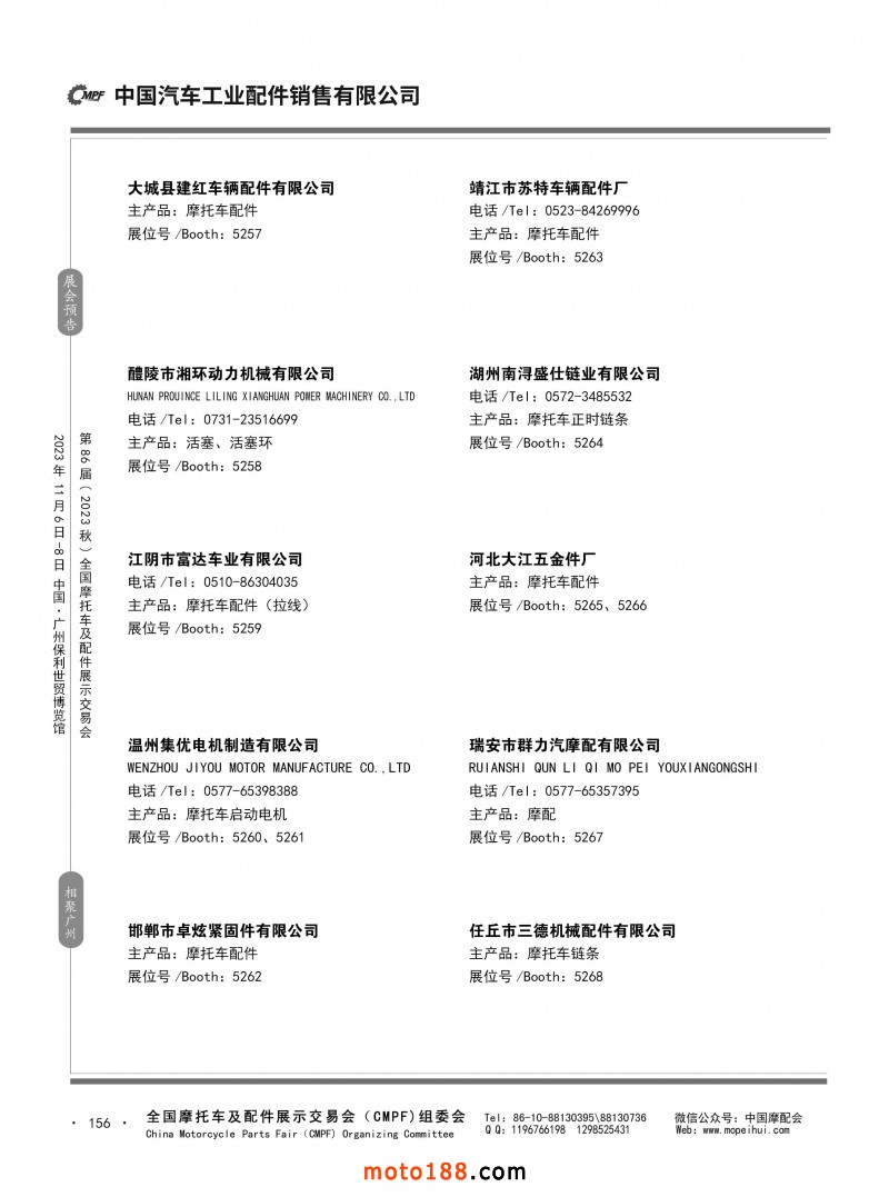 內80-176 第85屆(2023春)全國摩托車及配件展示交易會-重慶站參展企業信息