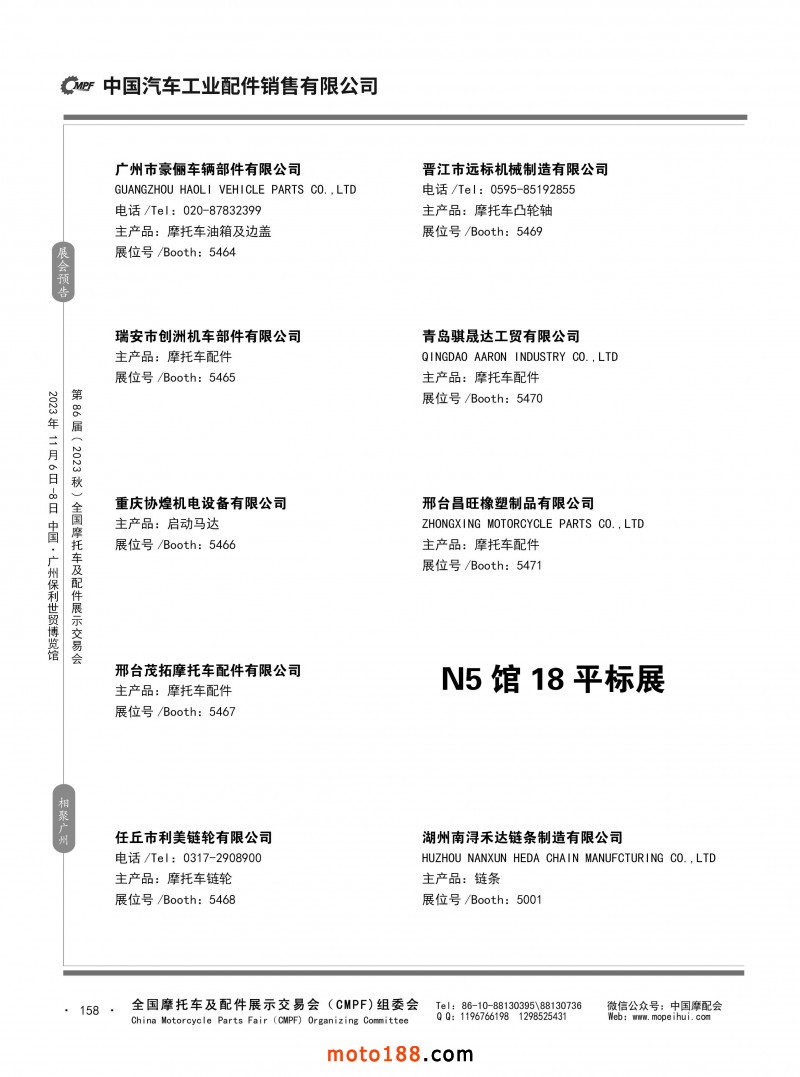 內(nèi)80-176 第85屆(2023春)全國摩托車及配件展示交易會-重慶站參展企業(yè)信息