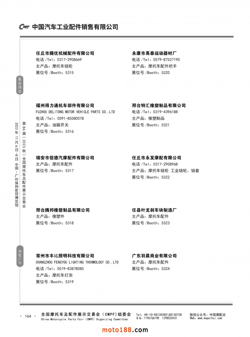 內(nèi)80-176 第85屆(2023春)全國(guó)摩托車(chē)及配件展示交易會(huì)-重慶站參展企業(yè)信息