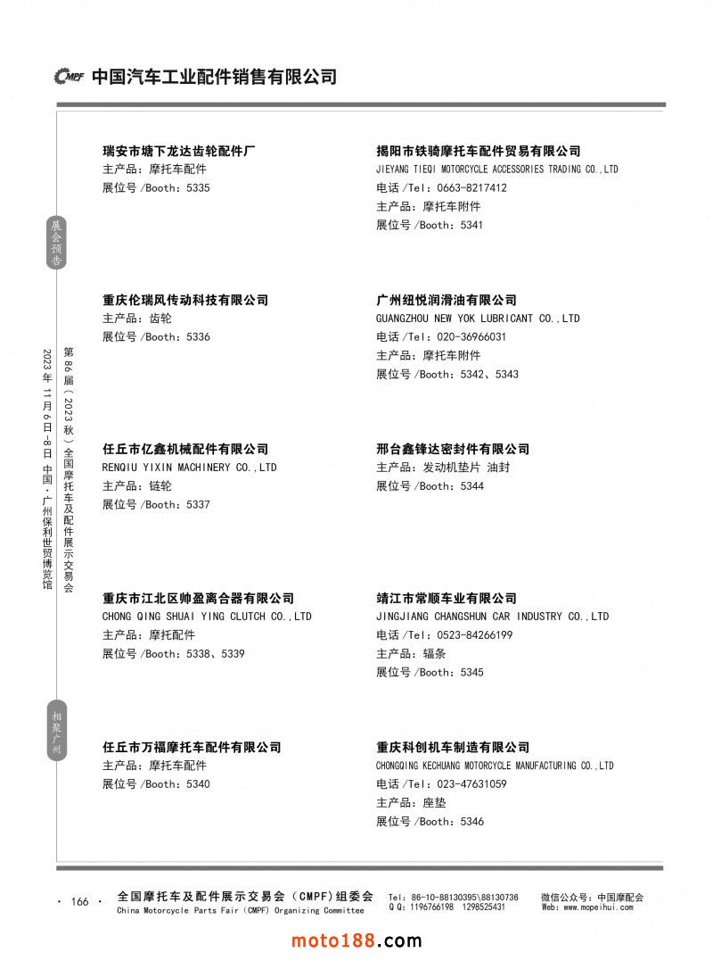 內80-176 第85屆(2023春)全國摩托車及配件展示交易會-重慶站參展企業信息