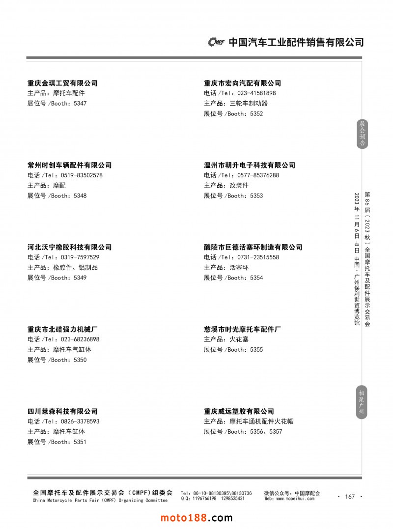 內(nèi)80-176 第85屆(2023春)全國(guó)摩托車(chē)及配件展示交易會(huì)-重慶站參展企業(yè)信息