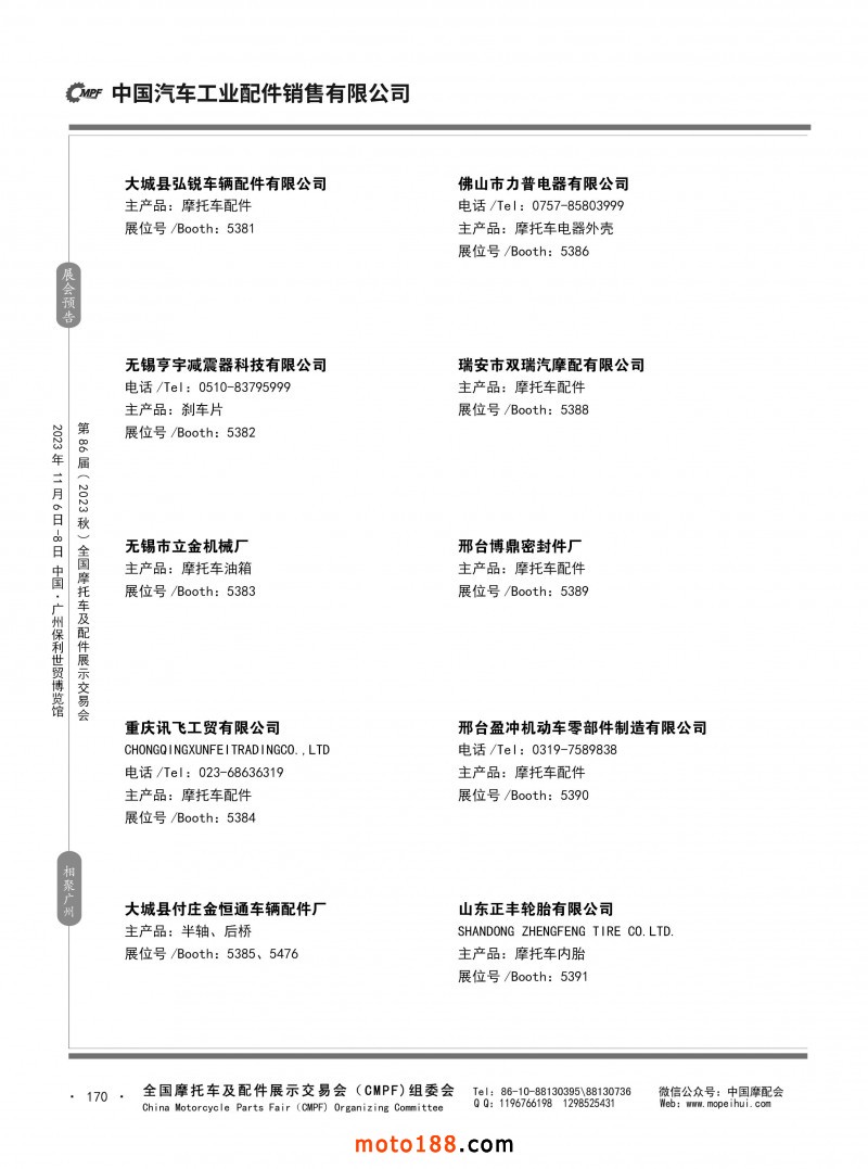 內80-176 第85屆(2023春)全國摩托車及配件展示交易會-重慶站參展企業信息