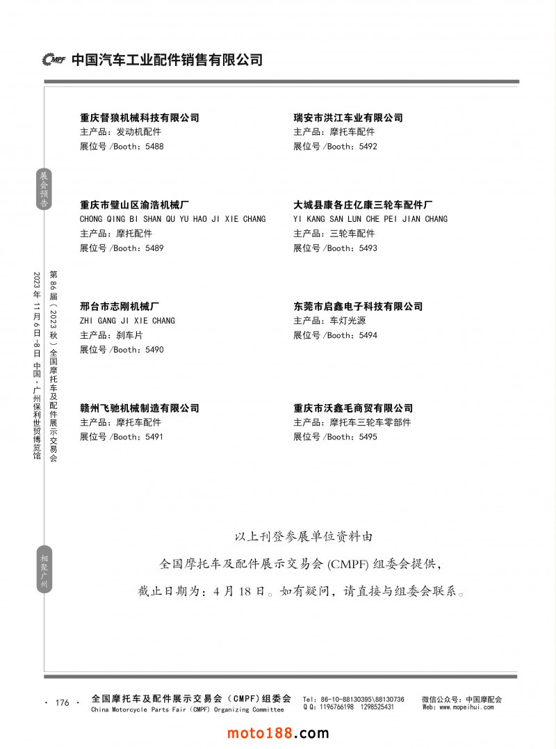 內80-176 第85屆(2023春)全國摩托車及配件展示交易會-重慶站參展企業信息