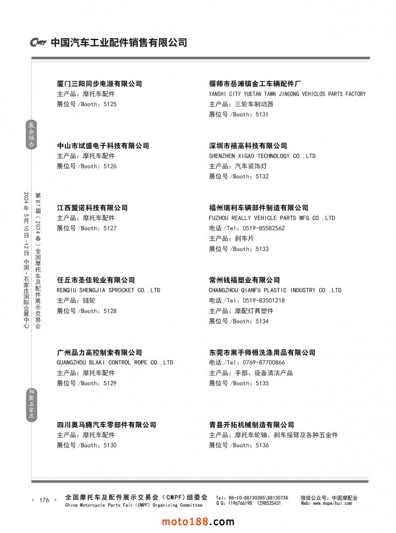 第86屆(2023秋)全國(guó)摩托車(chē)及配件展示交易會(huì)-廣州站參展企業(yè)信息