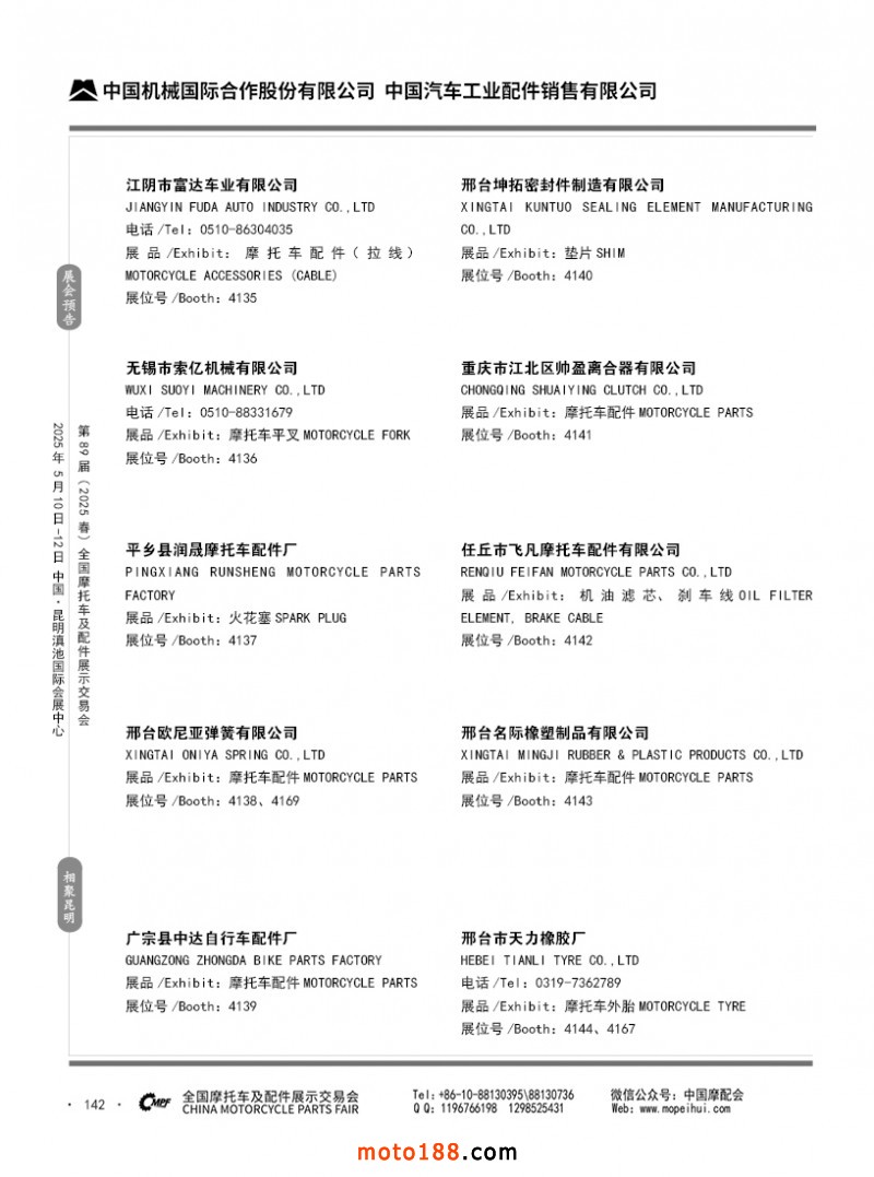 內69-188 第88屆(2024秋)全國摩托車及配件展示交易會-廣州站參展企業信息