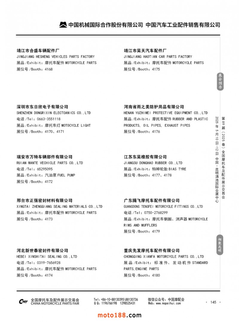 內69-188 第88屆(2024秋)全國摩托車及配件展示交易會-廣州站參展企業信息