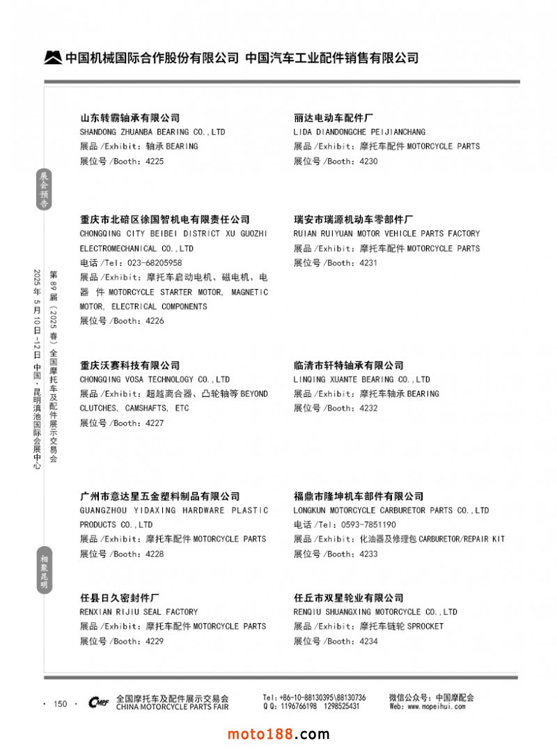 內(nèi)69-188 第88屆(2024秋)全國(guó)摩托車及配件展示交易會(huì)-廣州站參展企業(yè)信息