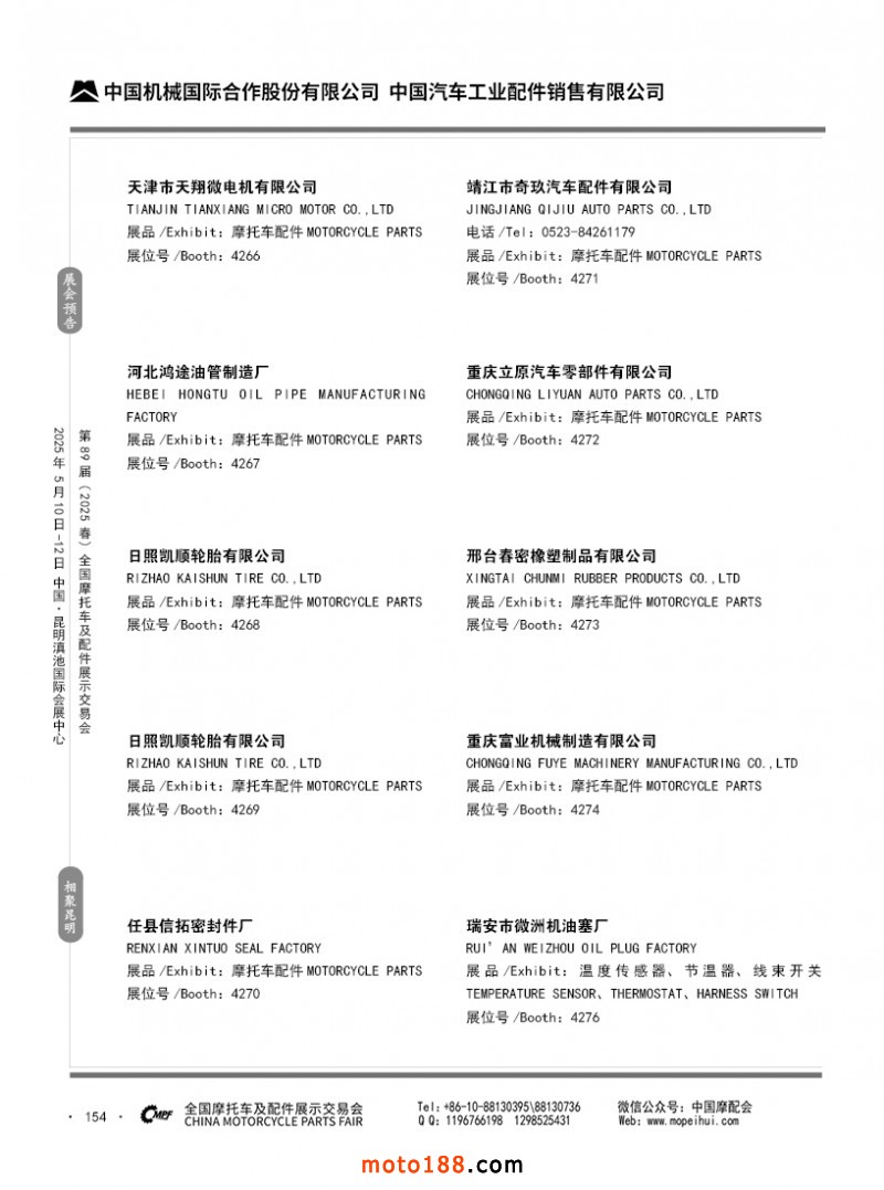 內69-188 第88屆(2024秋)全國摩托車及配件展示交易會-廣州站參展企業信息