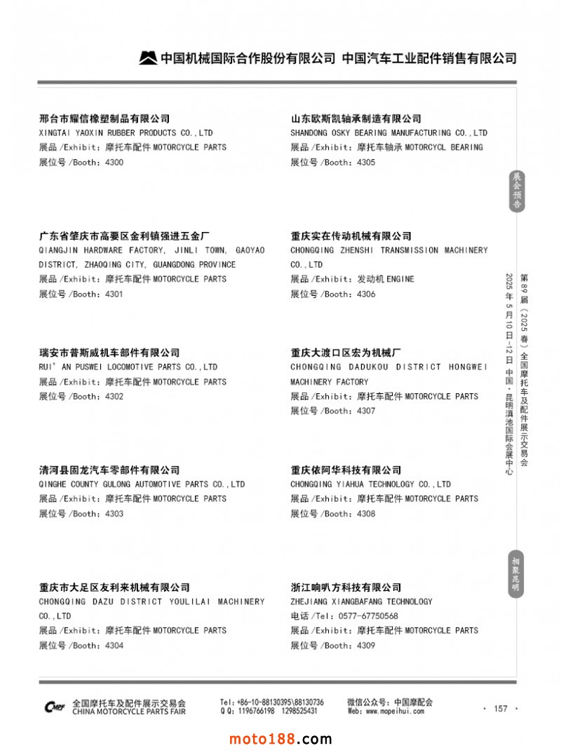 內69-188 第88屆(2024秋)全國摩托車及配件展示交易會-廣州站參展企業信息